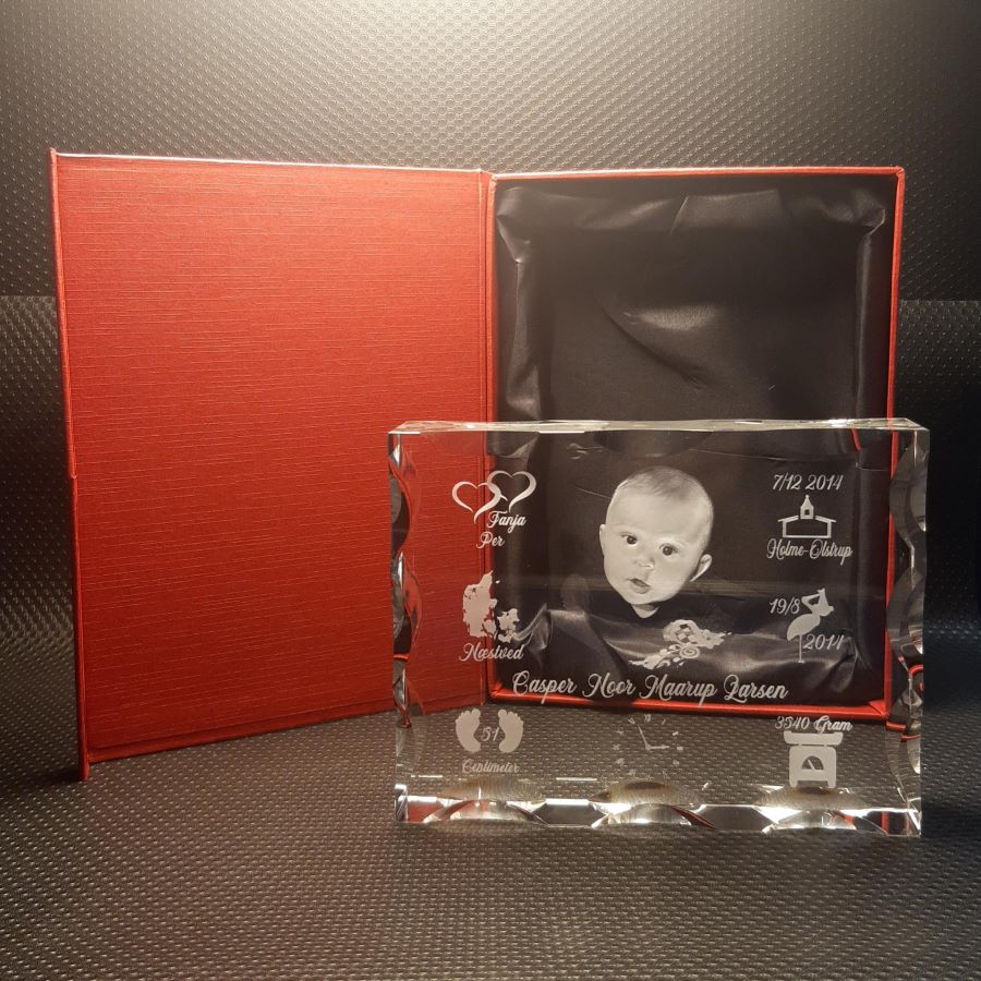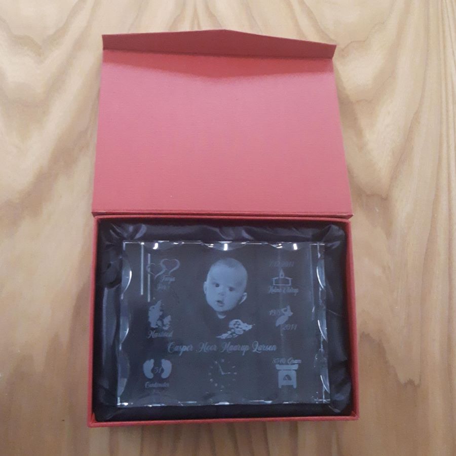 Det graveres med valgfri tekst, og det det billede som ønskes