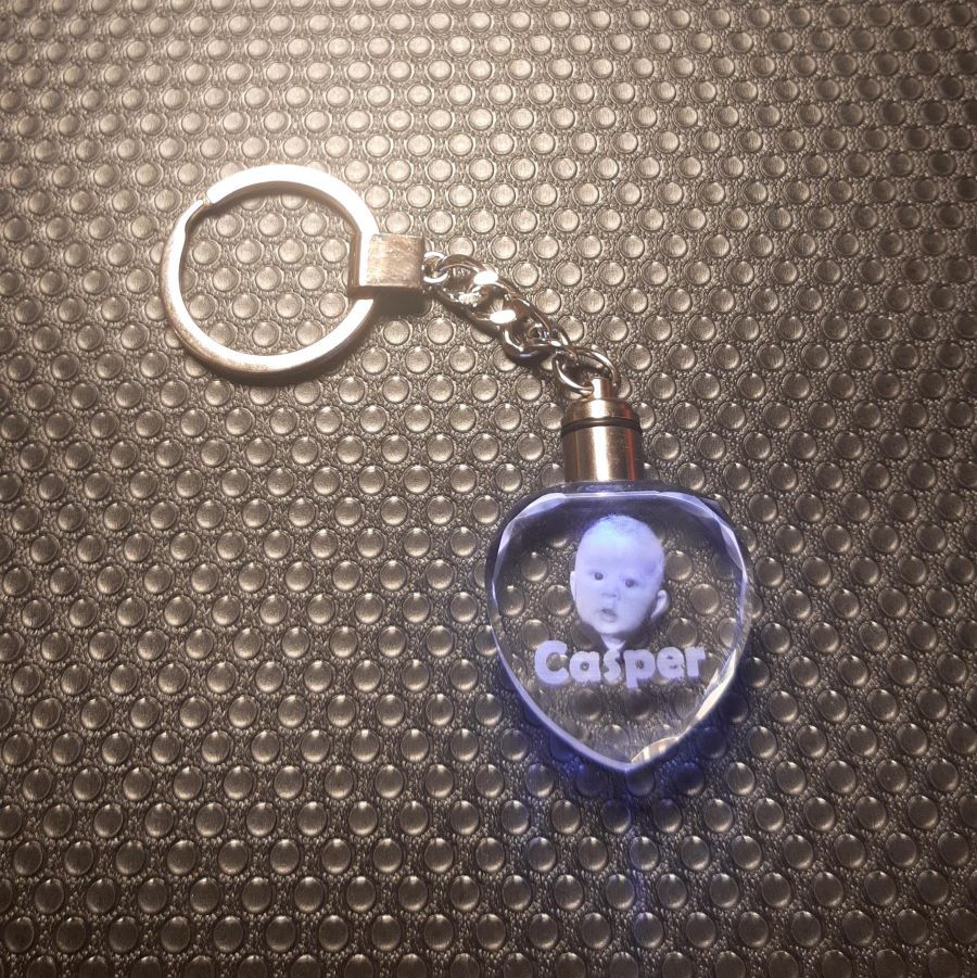 hjerteformet krystalglas nøglering med 3d billede og navn